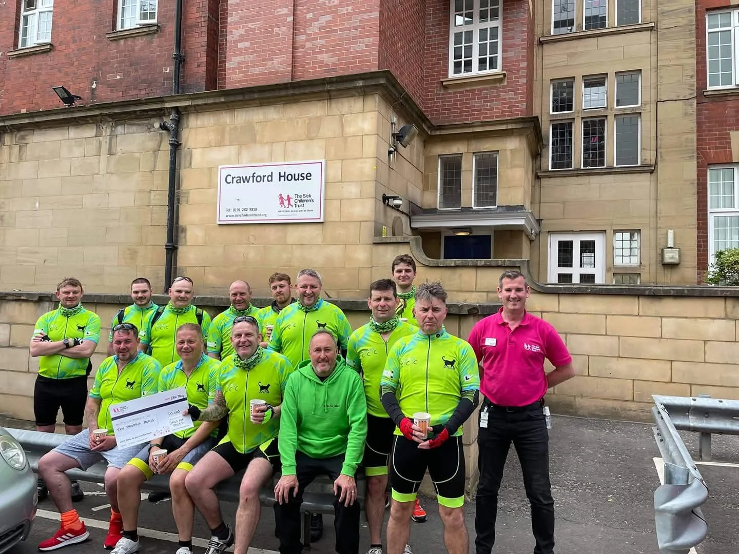 Yet another £10,000 grant made to The Sick Children’s Trust (Crawford House). This time it was delivered half way through a cycling event, which meant that some of the team could go along as well.